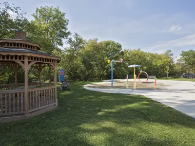 The dog park includes accessible paths, a controlled entrance, waste disposal unit and accompanying parking lot. Please note that the park is used at the owner's risk.
